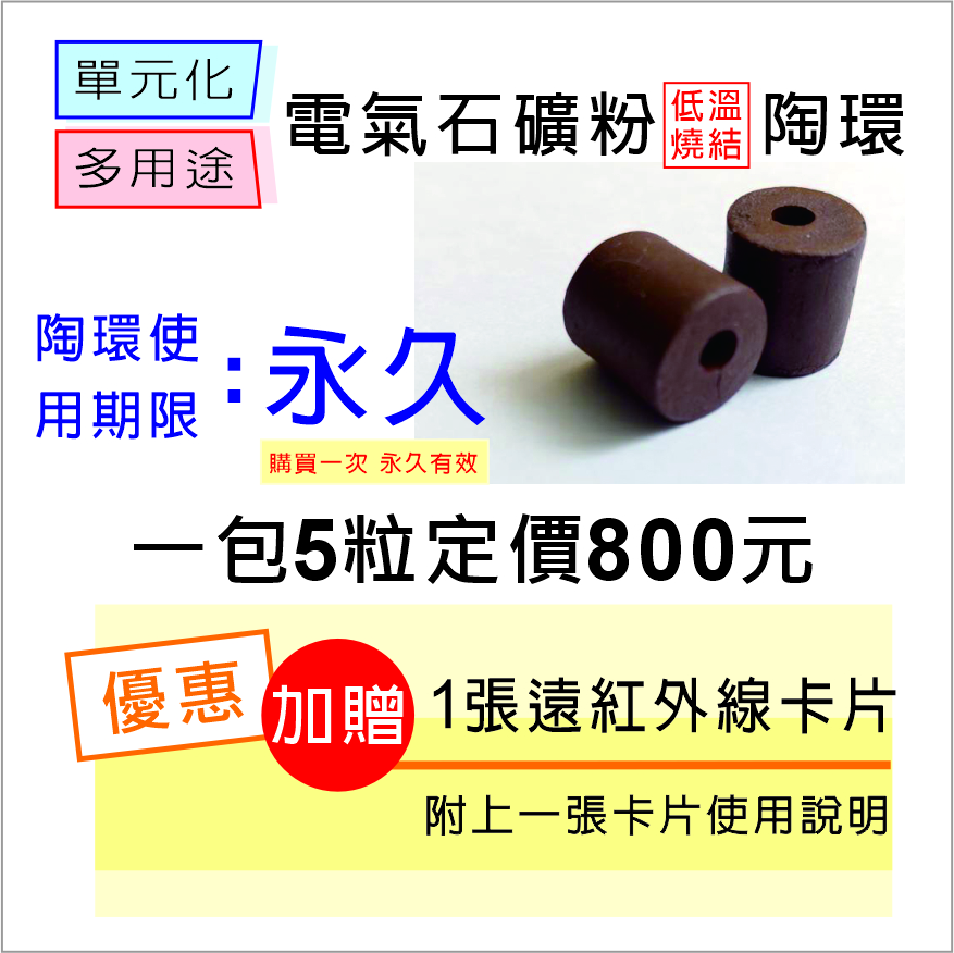 電氣石礦粉陶環5顆+正向能量卡片1張+送1年碼(台灣/大陸可售)